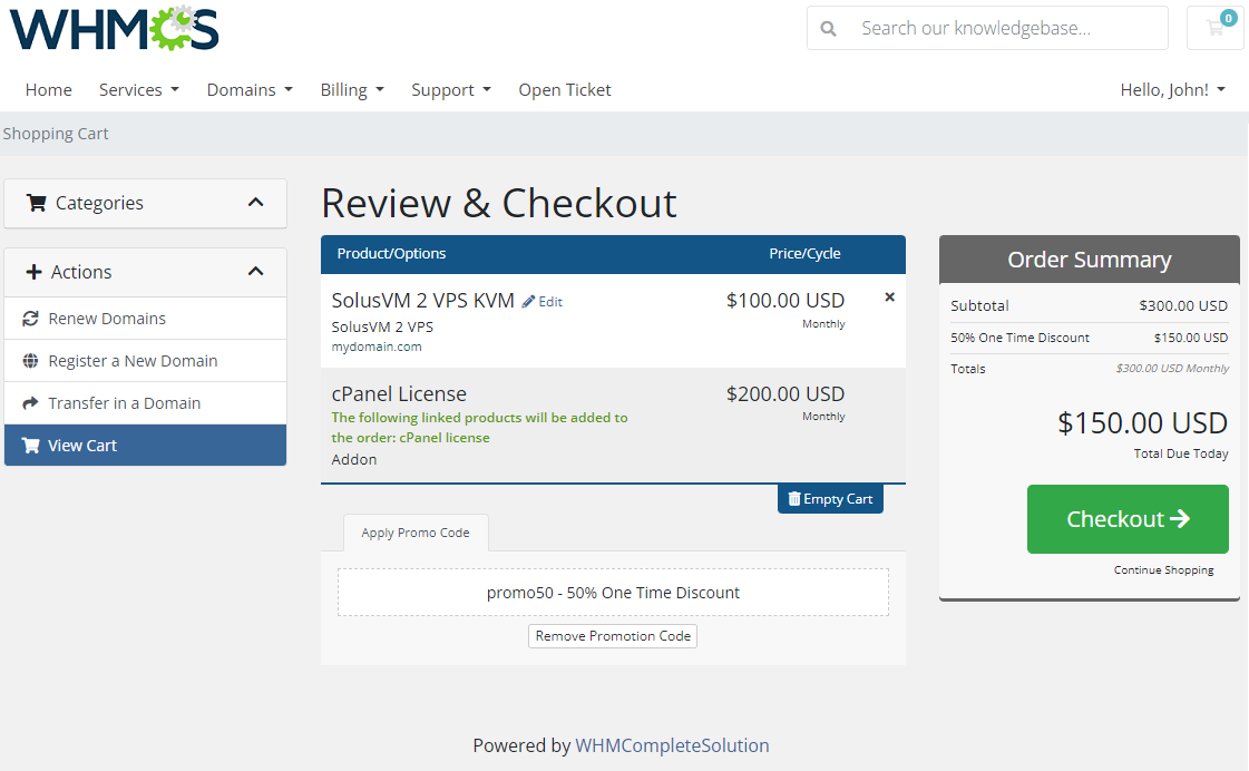 Empower your clients with a fully branded control panel to manage orders, renewals, and details.